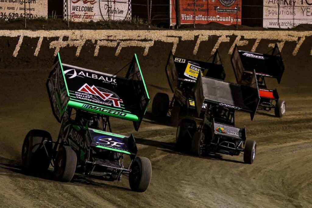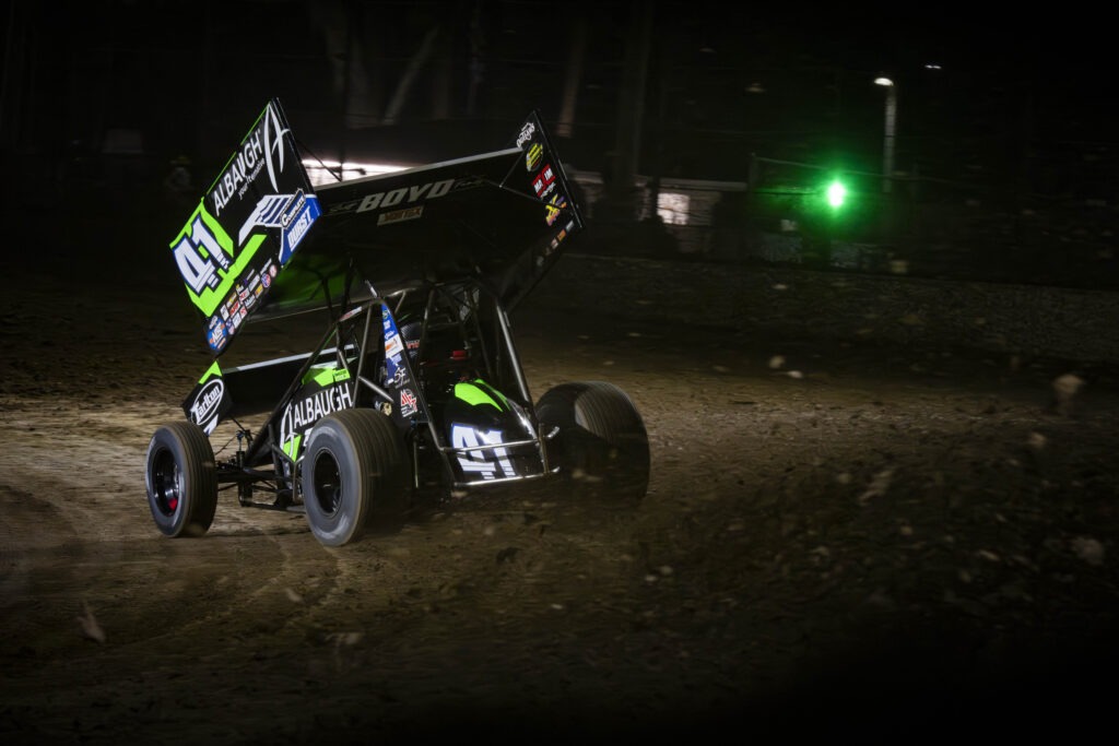 After the traditional four-wide salute to the fans in the stands, as well as those tuning in on DIRTVision, the driver in position one stepped on the accelerated and the race was on in Missouri. Buddy Kofoid led the opening lap as Carson Macedo moved the Albaugh – Your Alternative #41 Maxim into the runner-up position moving by Bayston in turn three.