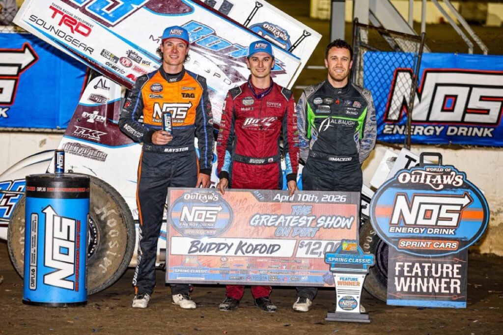The 24 eligible drivers who earned a spot in the 40-lap Spring Classic opening night feature made some final preparations before climbing into their high speed offices to get to work on the high banks of this bullring. The front row was made up of Buddy Kofoid and Spencer Bayston with Carson Macedo and Sheldon Haudenschild in the NOS Energy Drink/Royal Flooring #18 close behind in row two. Cole Macedo in the TwoC Racing entry and Kasey Jedrzejek in the Bill Rose Racing #6 side-by-side in row three with two-time World of Outlaws champion David Gravel #2 and Ashton Torgerson #1a anxiously pacing in row four.