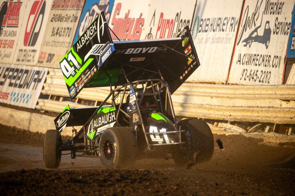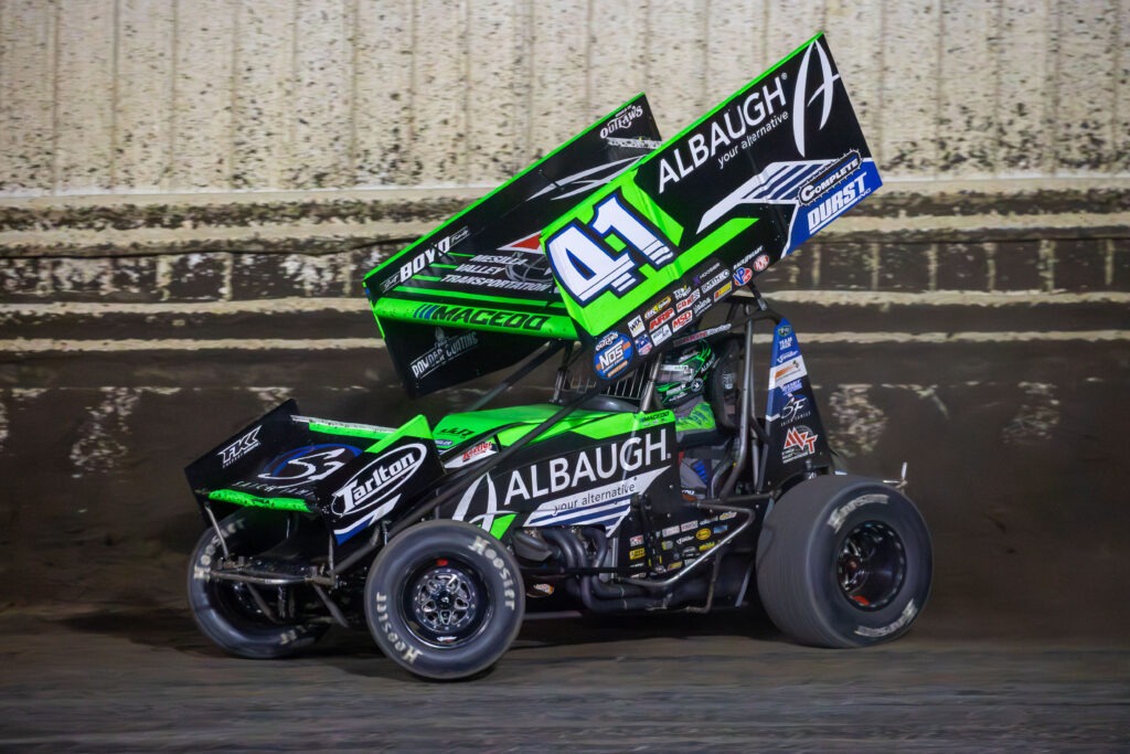 PARK CITY, KANSAS (March 28, 2026) – Carson Macedo and the Jason Johnson Racing (JJR) team arrived at 81 Speedway on Saturday for the last scheduled race in March with big smiles on their faces. On Friday night the team earned their first win of the 2026 season over in Missouri at US 36 Raceway in the KC Classic. The team looked to continue digging for speed and success in “The Sunflower State” of Kansas on Saturday night. The 81 Speedway is located just North of Wichita. It is a refined 3/8-mile dirt oval that produces exciting racing action from start to finish. There were 38 race teams parked throughout the pit area preparing to entertain the fans from the state that is home to the Kansas Jayhawks. It was another race day – World of Outlaws style – at 81 Speedway for the Tallgrass Tussle event!
