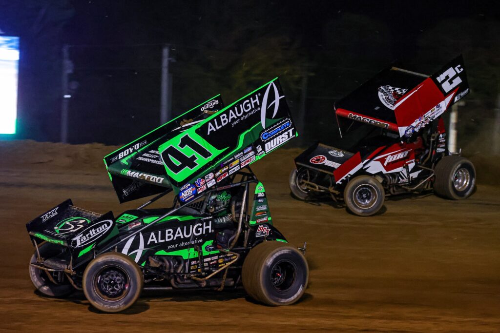 Up front the action was heating up too as second running David Gravel was pressuring Buddy Kofoid for the lead. On lap 13, the defending World of Outlaws champion moved the Big Game Motorsports #2 into the lead with the Roth Motorsports driver now engaged in chase mode.
