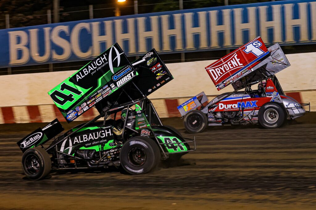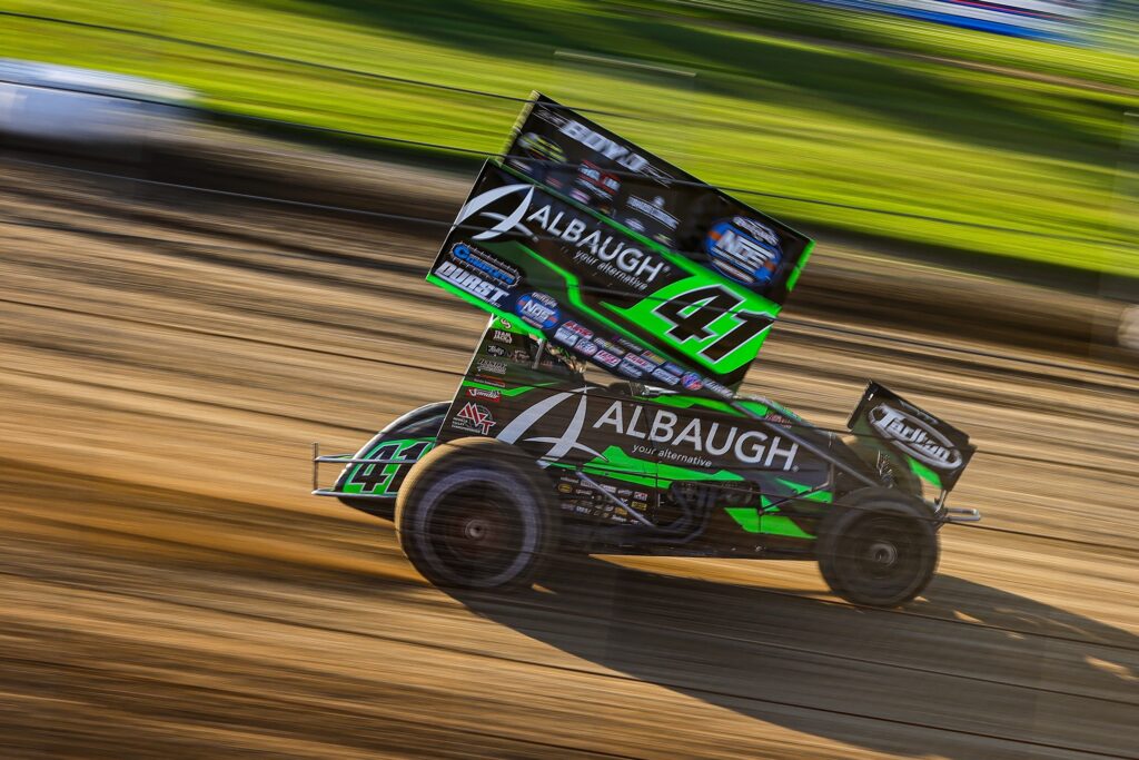 Philip Dietz, Robby McQuinn, and Adam Zimmerman were finishing their work in preparation for the 35-lap World of Outlaws Badger State Triple feature at Angell Park Speedway as the time to race for the money neared. Carson climbed aboard the Albaugh – Your Alternative/CASM Safety Products/BR Motorsports #41 and tightened his Crow Enterprizes safety belts. He would start his race for the checkers from the fifth position in row three pacing alongside Chris Windom in the NOS Energy Drink #7s. Each of these 24 drivers that earned a spot in the A-Main wanted to be standing on top of the podium at the end of the night, but there was only one step available. Emerson Axsom #27 and David Gravel #2 would lead the field of talented racers to the green flag with Sheldon Haudenschild #17 and Buddy Kofoid #83 behind them in row two. It was time to go racing at Angell Speedway Park in Wisconsin!