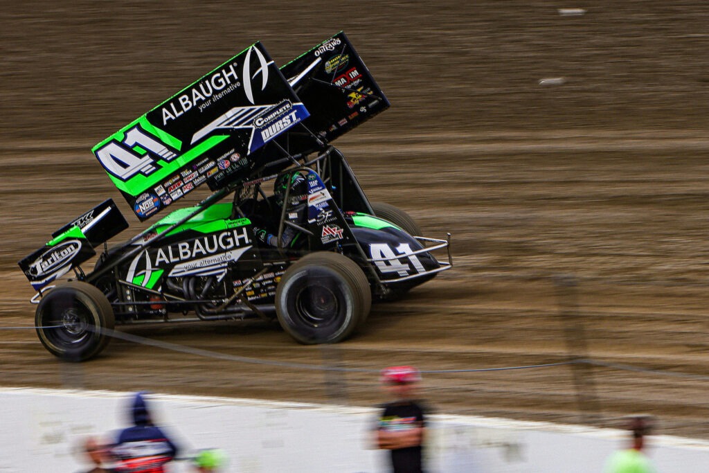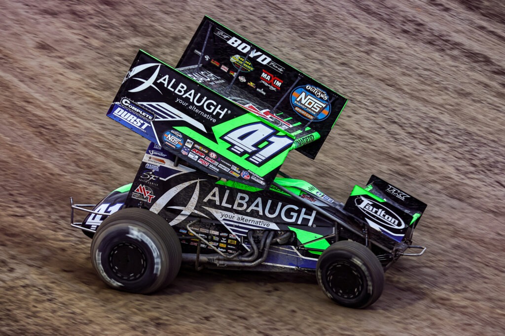 PEVELY, MISSOURI (April 11, 2026) – The only thing better than one night of racing at I-55 Federated Auto Parts Raceway Park is a second consecutive night of entertainment with the World of Outlaws NOS Energy Drink Sprint Car Series. This place is truly a shining gem for the sport of sprint car racing. After wheeling the Albaugh – Your Alternative #41 to a runner-up finish on Friday night crossing the finish line behind race winner Buddy Kofoid, Carson and the forty-one team were back at this entertaining and demanding high-banked quarter mile bullring for the finale of the Spring Classic. The sprint car teams were busy working on their cars as they prepared for another wheel banging night in the “Show Me State” of Missouri. With traffic buzzing down Interstate 55 behind the frontstretch grandstands, even with construction going on, these fire breathing 410 cubic inch sprint cars were ready to make those passenger vehicles look slow. There were 37 teams parked again in the pit area located over the hill in turn two and off the back straightaway. It was race day at I-55 Federated Auto Parts Raceway Park for the final night of the Spring Classic!